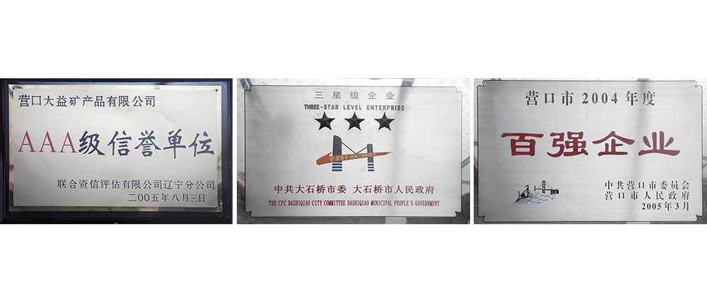营口大益矿产品有限公司成立于1994年,公司位于“中国镁都”辽宁省大石桥市虎庄镇,占地面积4.8万平方米,距沈大高速公路虎庄出口500米,大连港210公里,鲅鱼圈港60公里,哈大铁路大石桥站5公里,营口机场30分钟车程。交通位置十分便利,为公司构筑了理想的外部条件。经过20几年的发展,积累了丰富的生产经营经验。